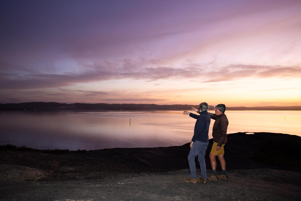 Your journey begins at 4:30 PM, departing the trailhead at picturesque Whalers Cove. In the late afternoon soft light over the landscape, you'll embark on a fully guided walk along a trail in nature. The path, ranging from easy stretches to moderate inclines, winds through coastal bushland, along the beach and onto the granite rise at Uredale Point. See the majestic and captivating King George Sound, the serene water in Princess Royal Harbour, and foamy waves at Bramble Beach. Feel the fresh evening air and immerse yourself in the natural beauty of the Albany coastline.